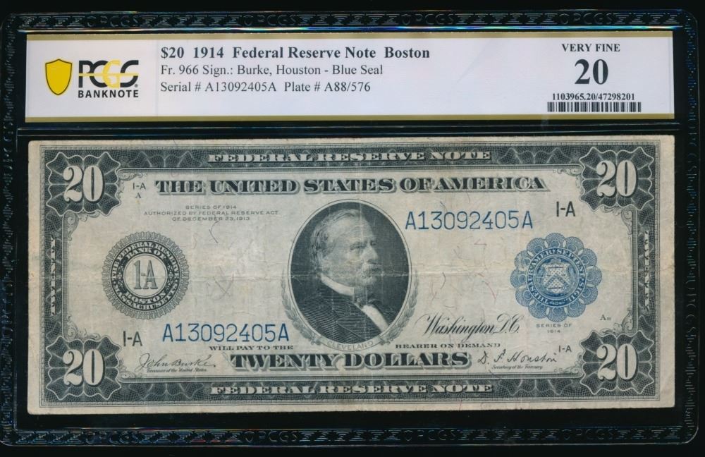 One 1914 $20 Boston FRN PCGS 20.