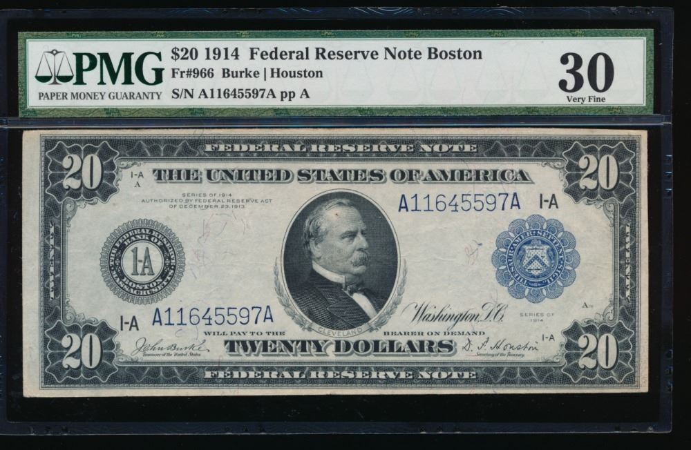 One 1914 $20 Boston Federal Reserve Note PMG 30.