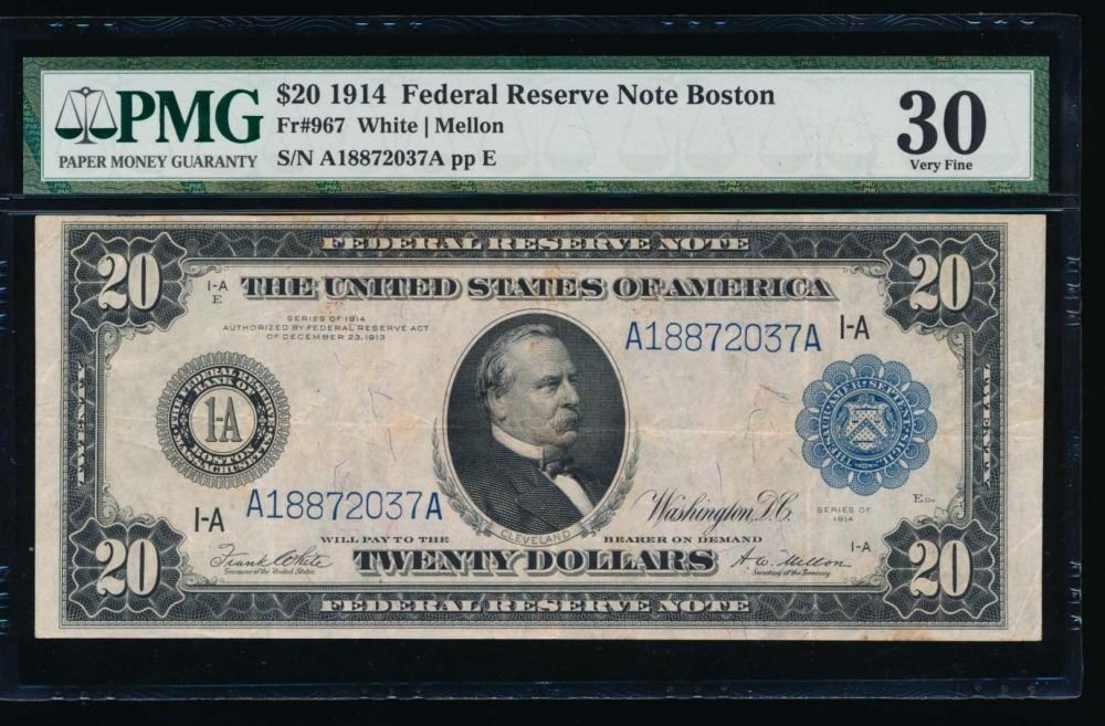 One 1914 $20 Boston Federal Reserve Note PMG 30.