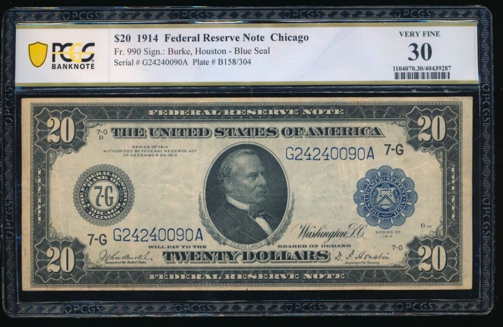 One 1914 $20 Chicago Federal Reserve Note PCGS 30.