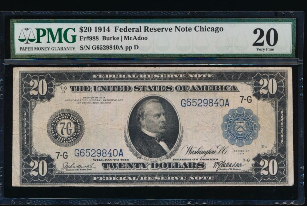 One 1914 $20 Chicago Federal Reserve Note PMG 20.