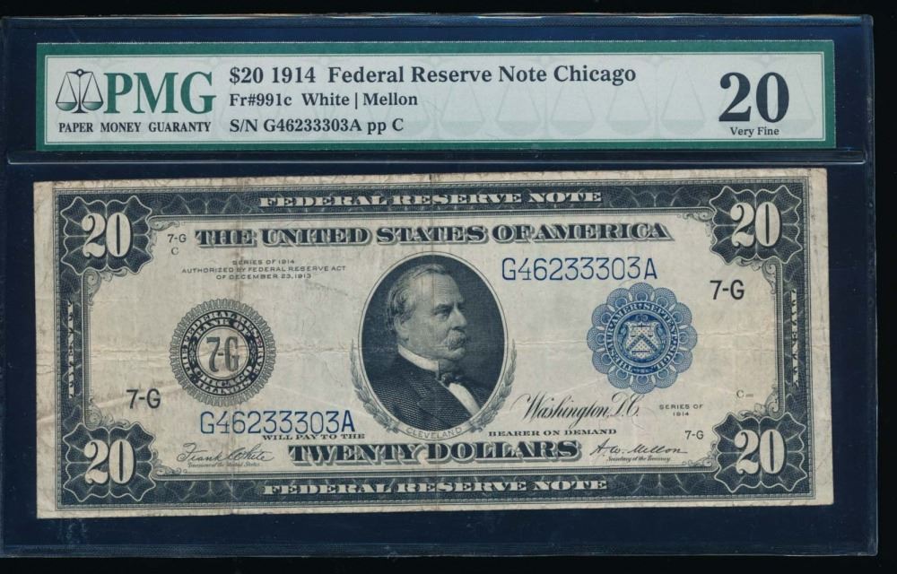 One 1914 $20 Chicago Federal Reserve Note PMG 20.