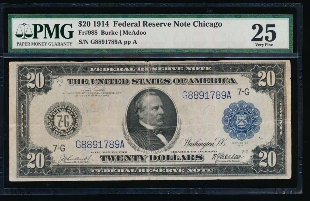 One 1914 $20 Chicago Federal Reserve Note PMG 25.