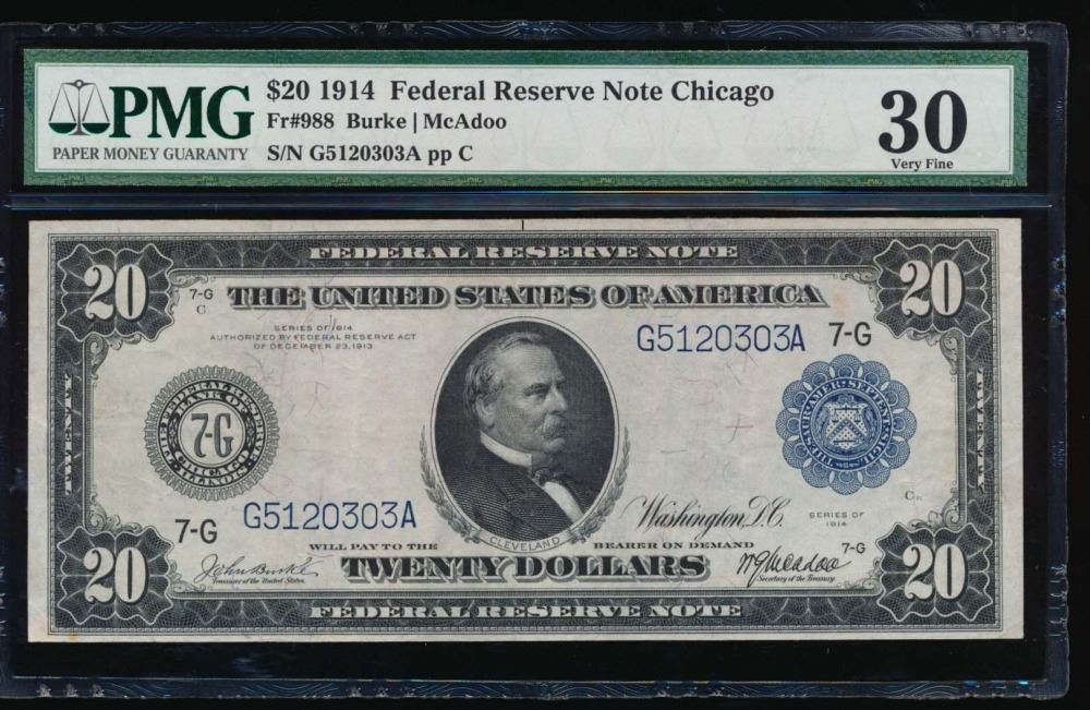 One 1914 $20 Chicago Federal Reserve Note PMG 30.