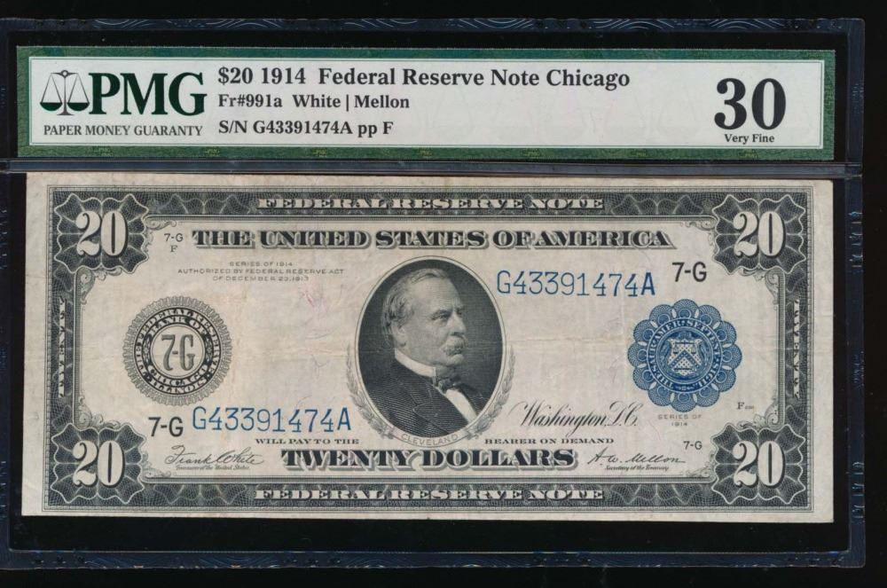 One 1914 $20 Chicago Federal Reserve Note PMG 30.