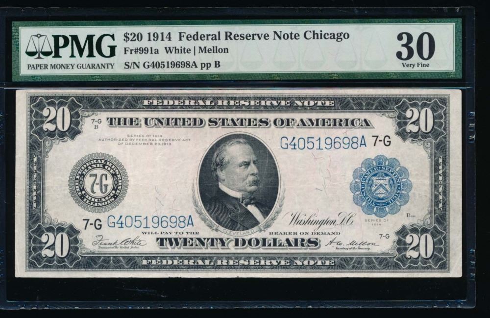 One 1914 $20 Chicago Federal Reserve Note PMG 30.