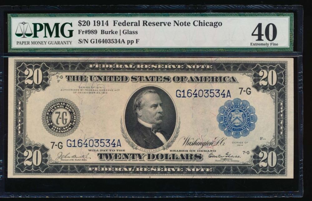 One 1914 $20 Chicago Federal Reserve Note PMG 40.