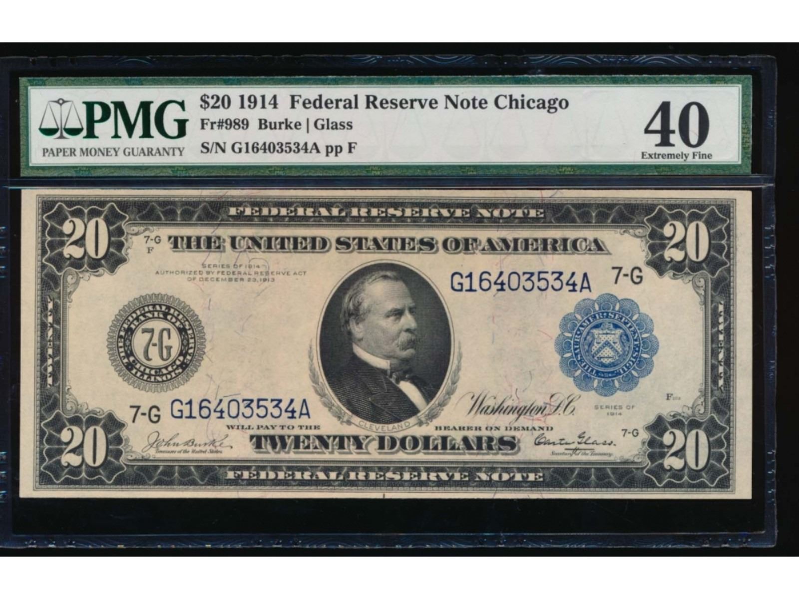 One 1914 $20 Chicago Federal Reserve Note PMG 40.