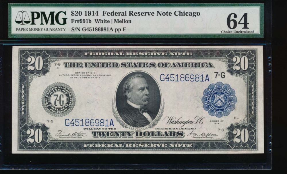 One 1914 $20 Chicago Federal Reserve Note PMG 64.