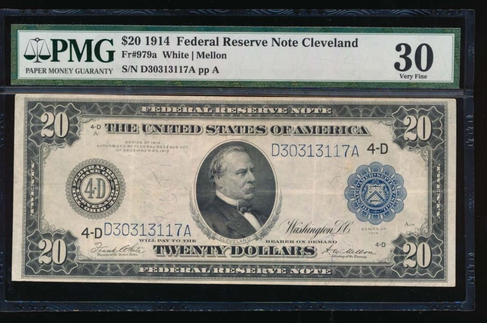 One 1914 $20 Cleveland Federal Reserve Note PMG 30.