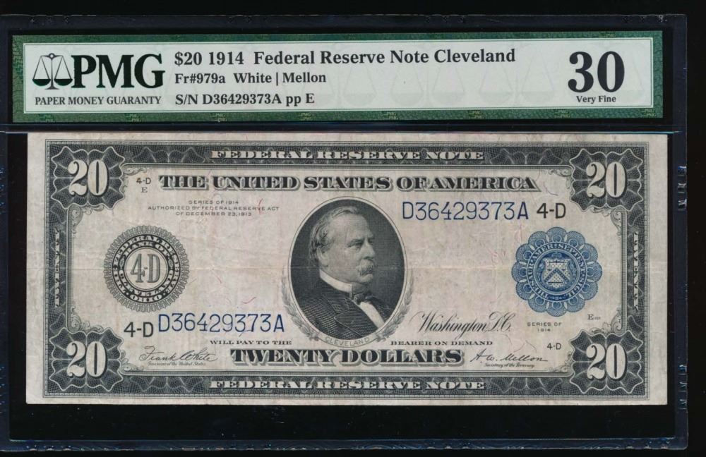 One 1914 $20 Cleveland Federal Reserve Note PMG 30.
