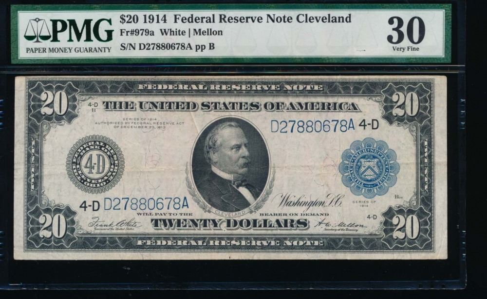 One 1914 $20 Cleveland Federal Reserve Note PMG 30.