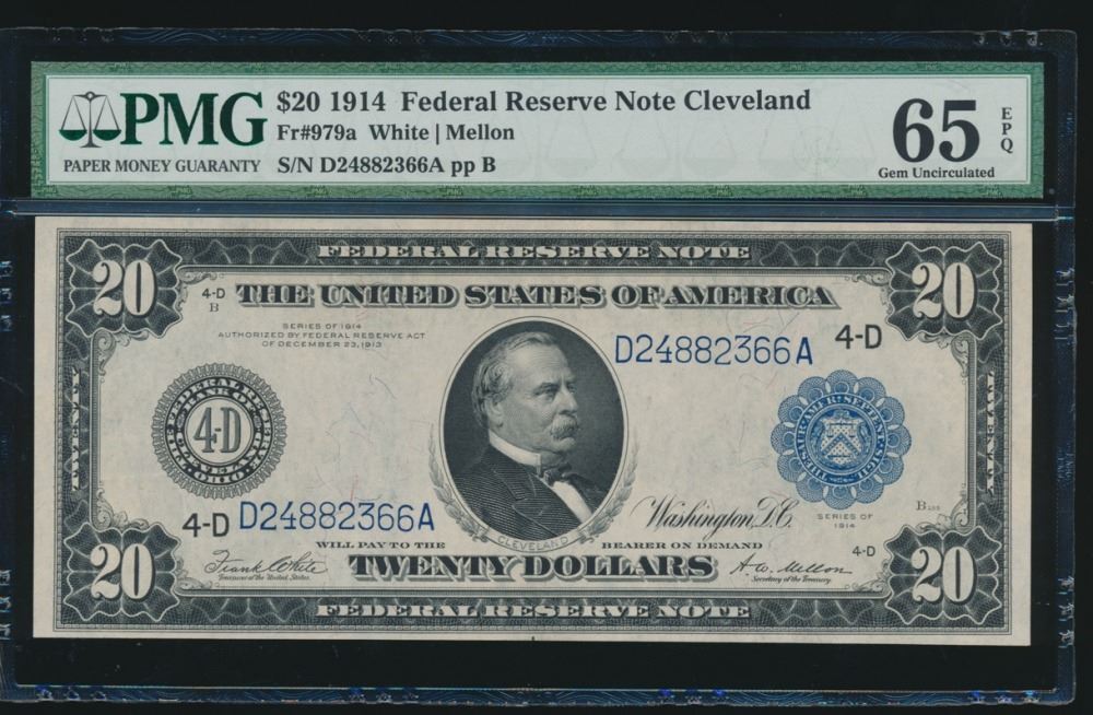 One 1914 $20 Cleveland Federal Reserve Note PMG 65EPQ.