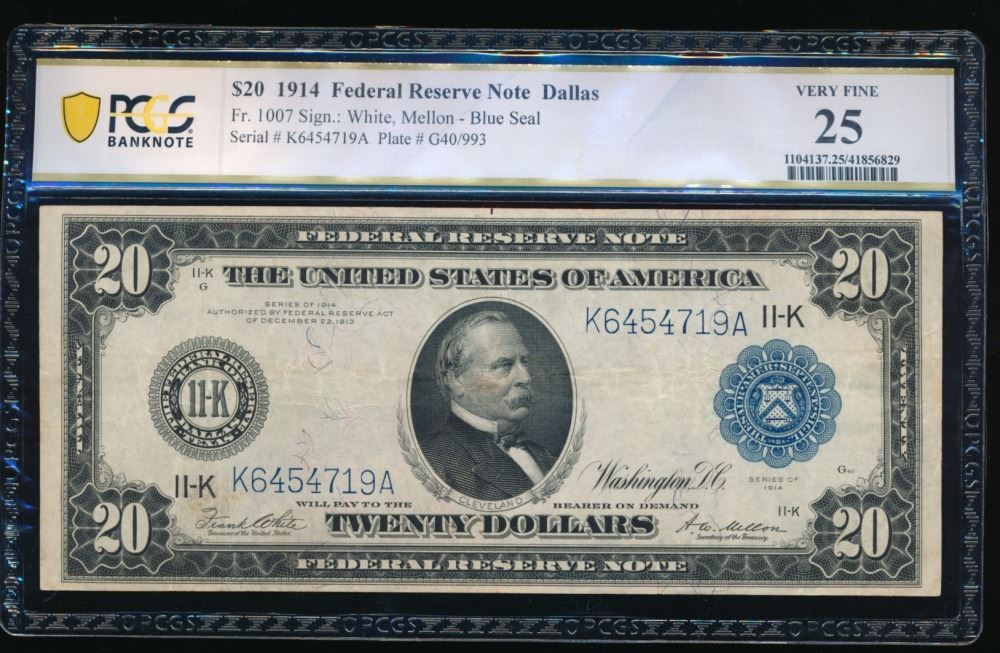 One 1914 $20 Dallas FRN PCGS 25.