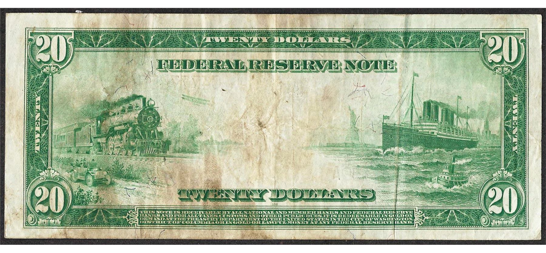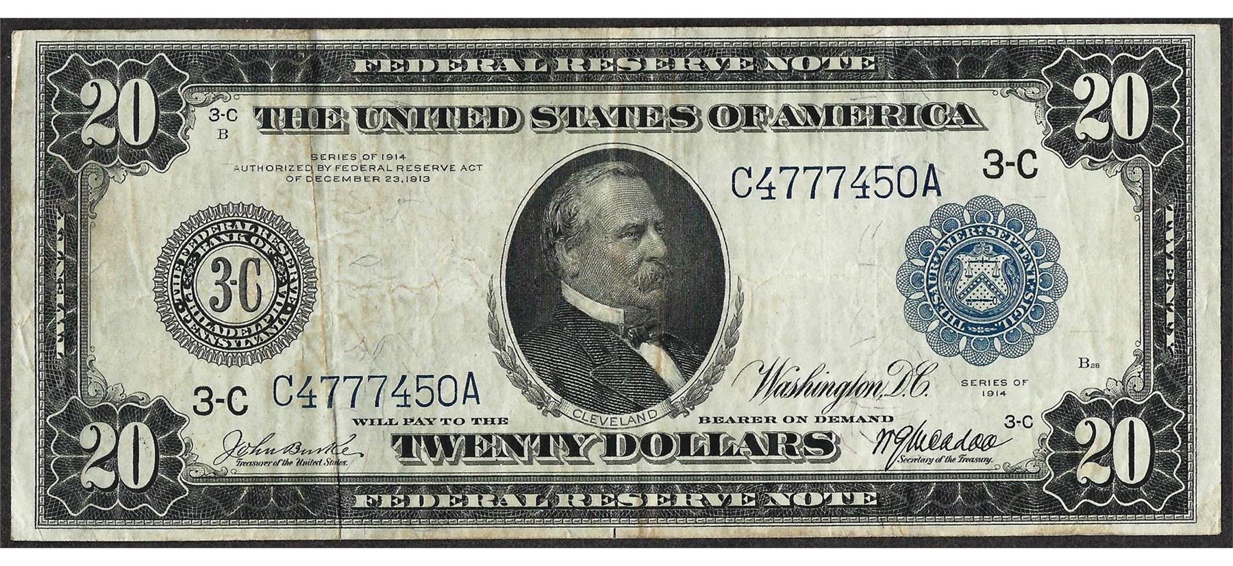 One 1914 $20 Federal Reserve Bank Note Philadelphia.