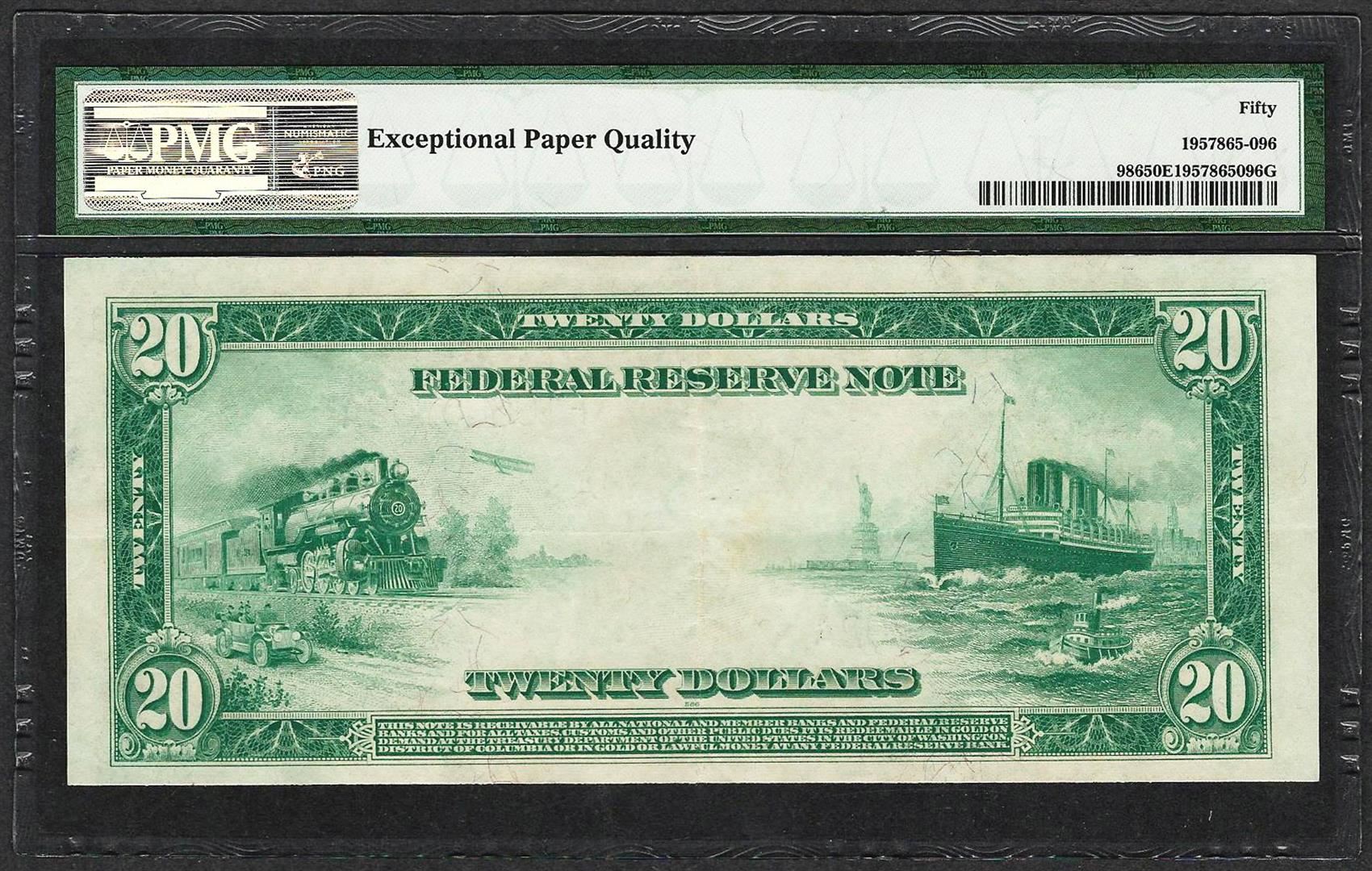 1914 $20 Federal Reserve Note Atlanta Fr.986 PMG About Uncirculated 50EPQ