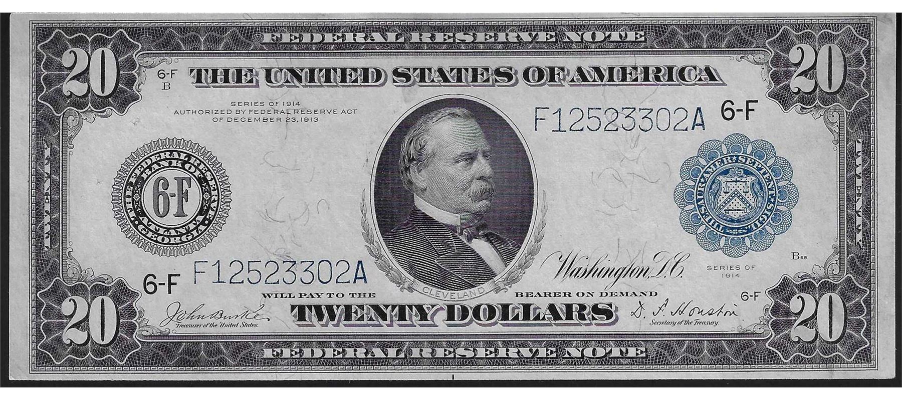 One 1914 $20 Federal Reserve Note Atlanta.