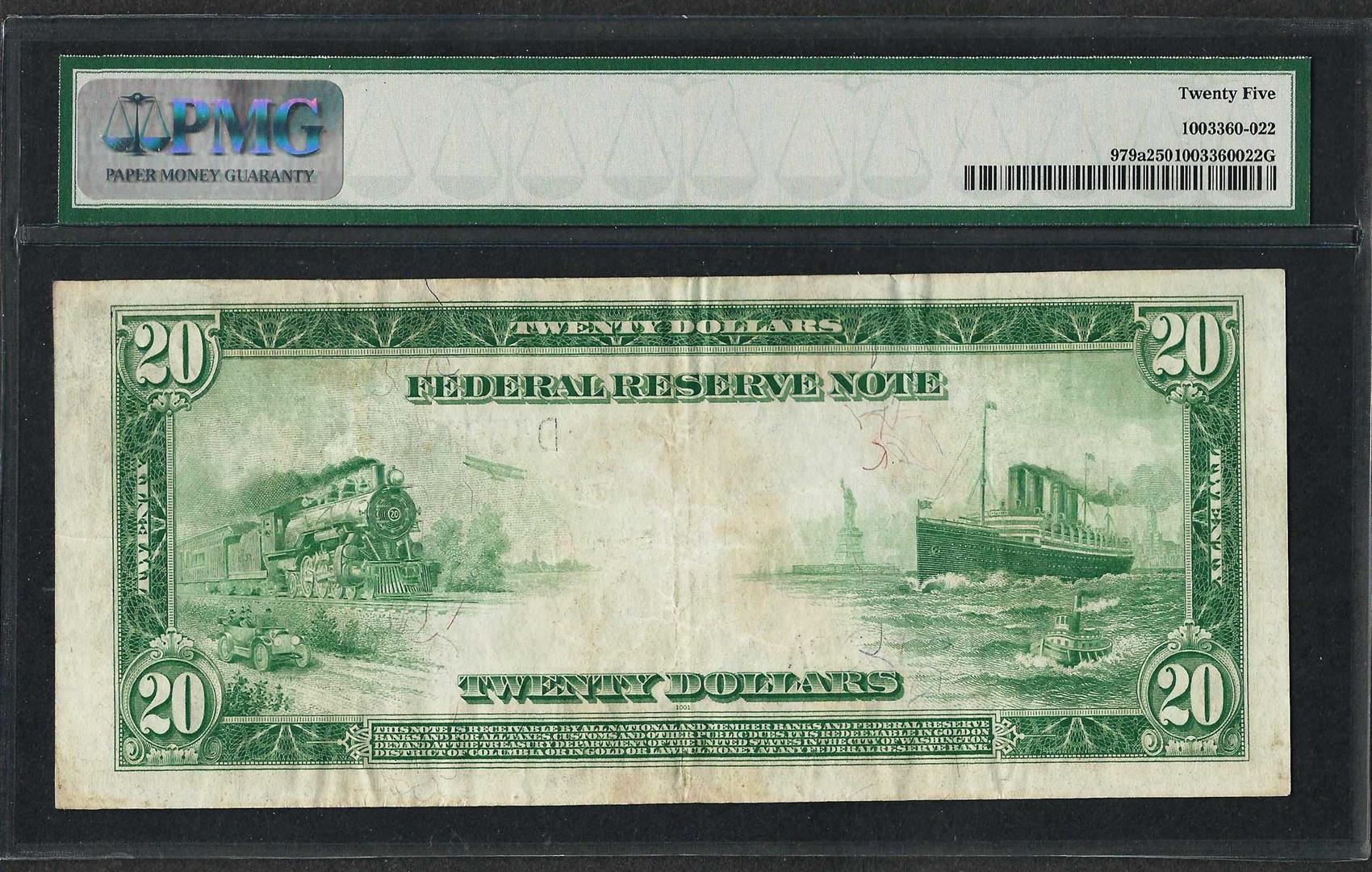 1914 $20 Federal Reserve Note Cleveland Fr.979a PMG Very Fine 25