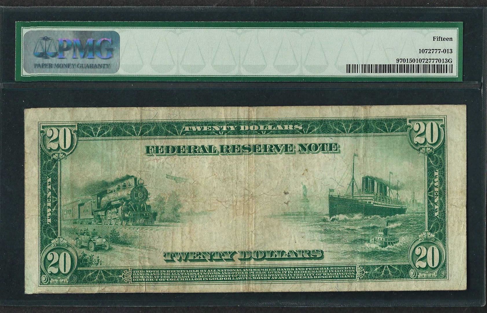 1914 $20 Federal Reserve Note New York Fr.970 PMG Choice Fine 15