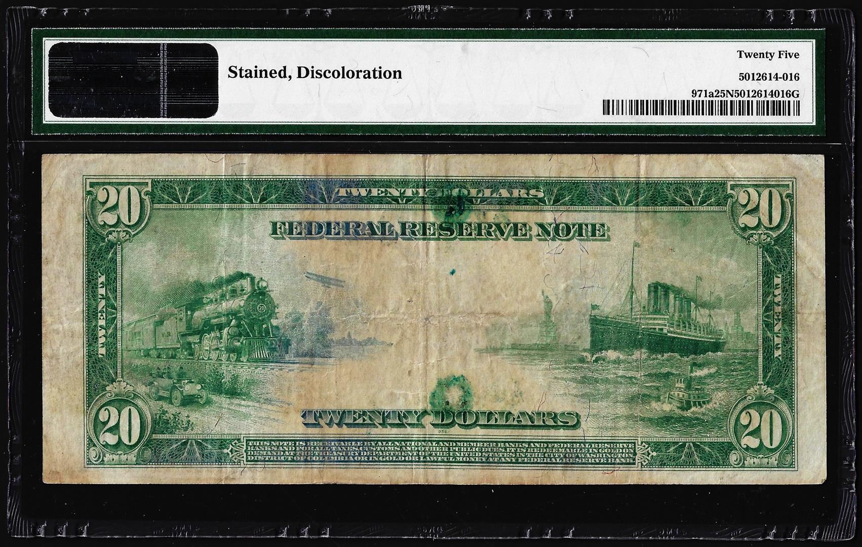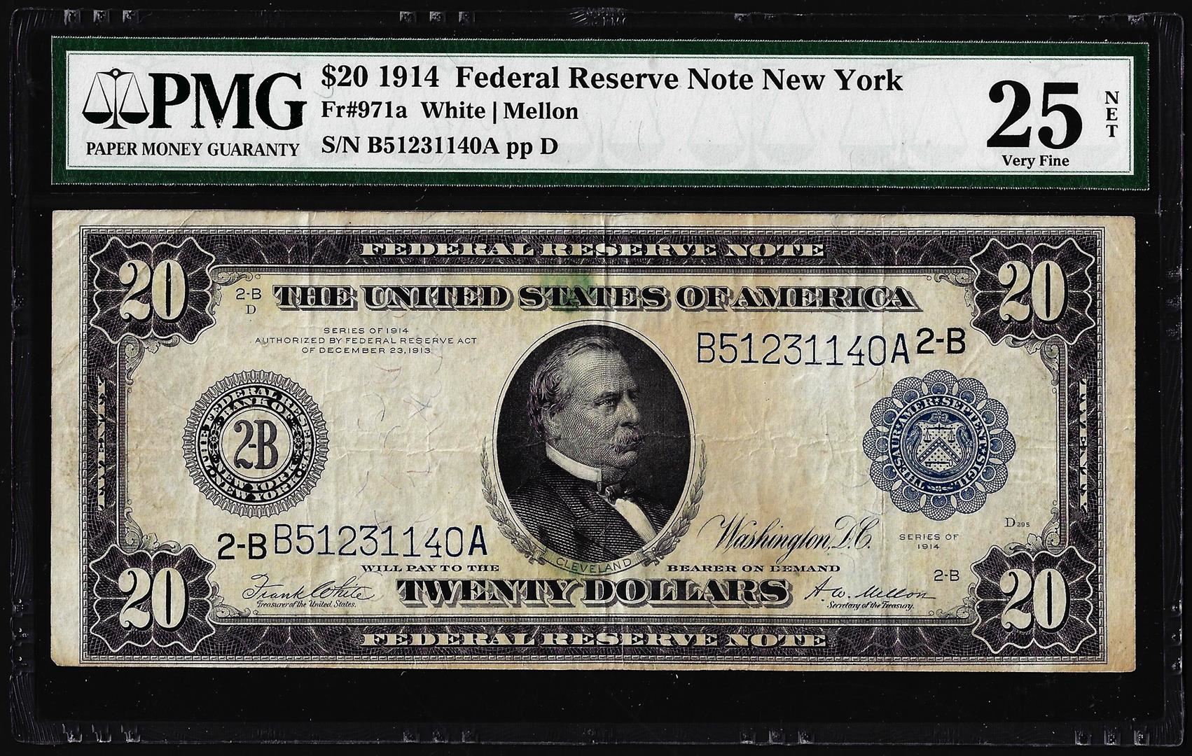 One 1914 $20 Federal Reserve Note New York Fr.971a PMG Very Fine 25 Net. PMG Certified.