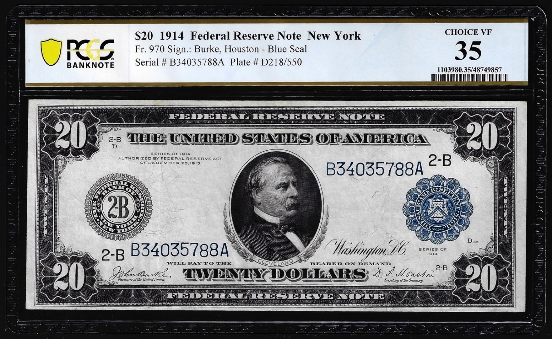 One 1914 $20 Federal Reserve Note New York PCGS Choice VF 35. PCGS Graded.