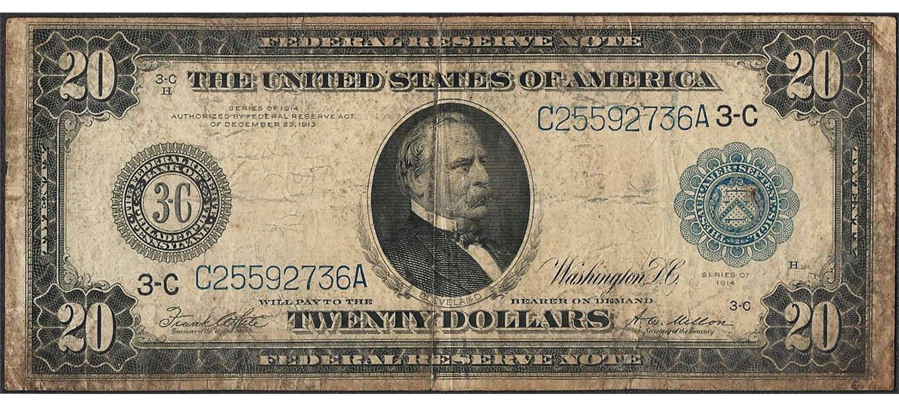 One 1914 $20 Federal Reserve Note Philadelphia - Split.