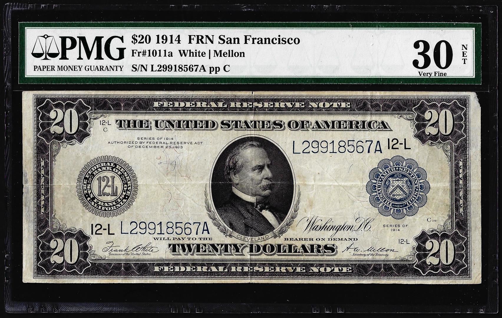 1914 $20 Federal Reserve Note San Francisco Fr.1011a PMG Very Fine 30 Net