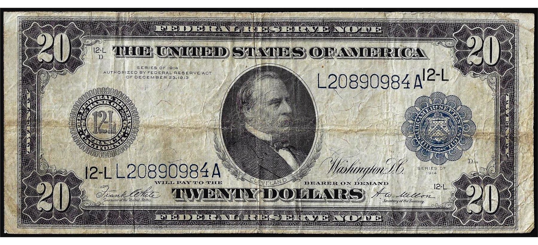 One 1914 $20 Federal Reserve Note San Francisco.