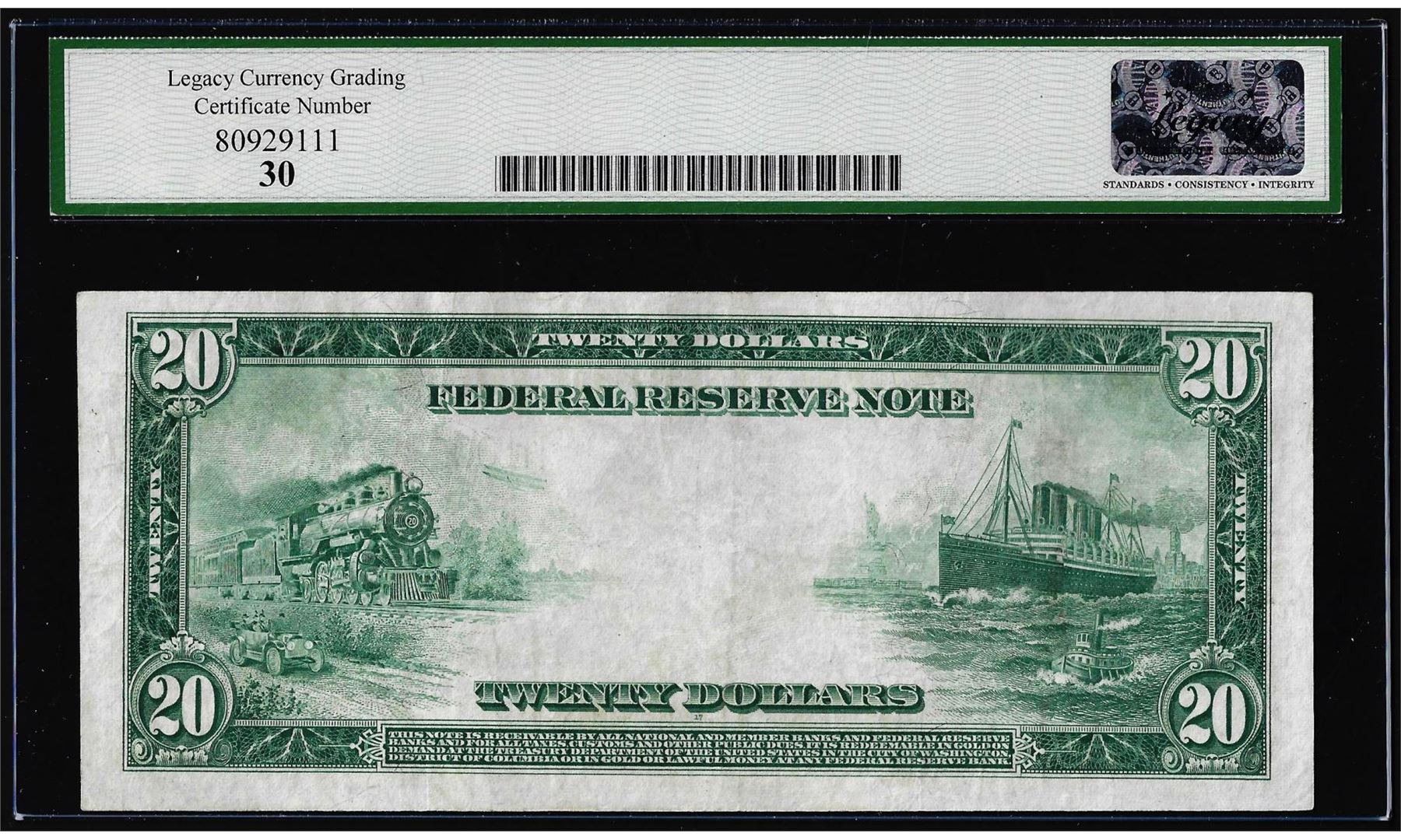 One 1914 $20 Federal Reserve Note St. Louis Fr. 992 Legacy Very Fine 30. Legacy Graded.