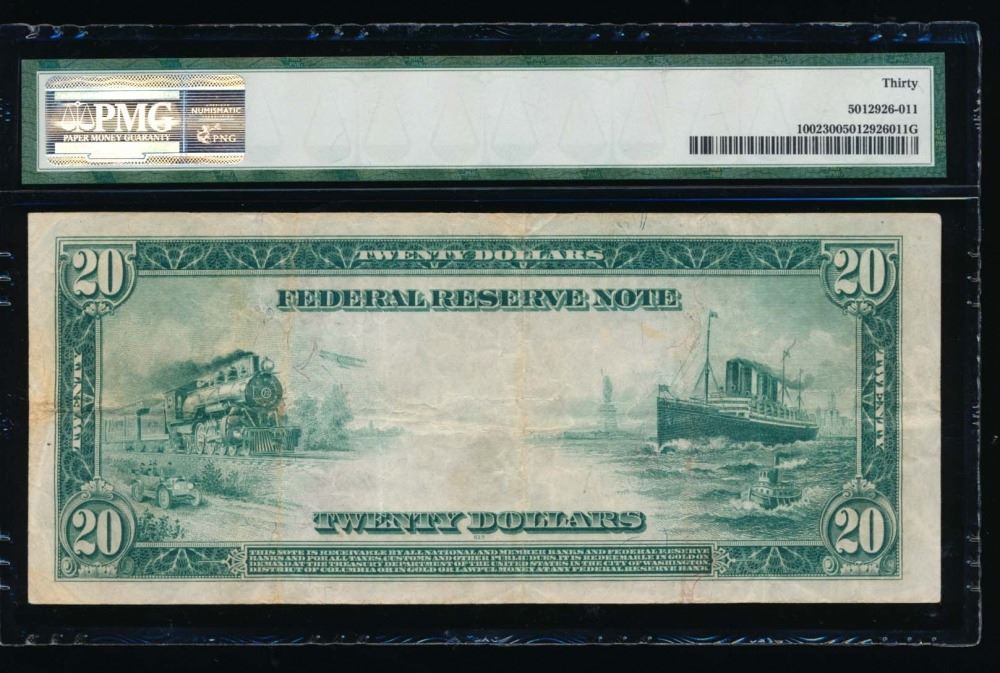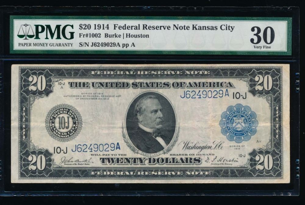 One 1914 $20 Kansas City Federal Reserve Note PMG 30.