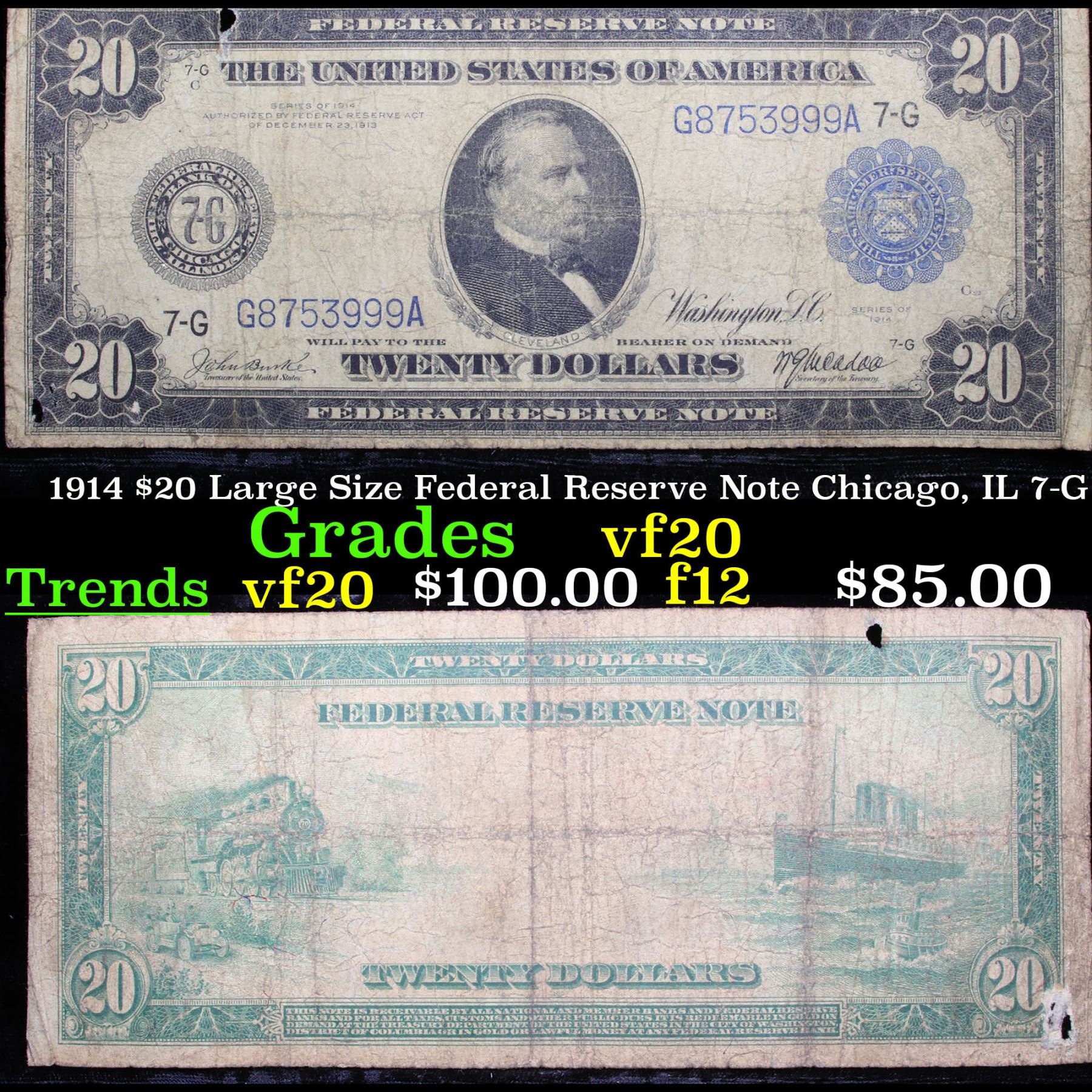 1914 $20 Large Size Federal Reserve Note Chicago, IL 7-G Grades vf, very fine.
