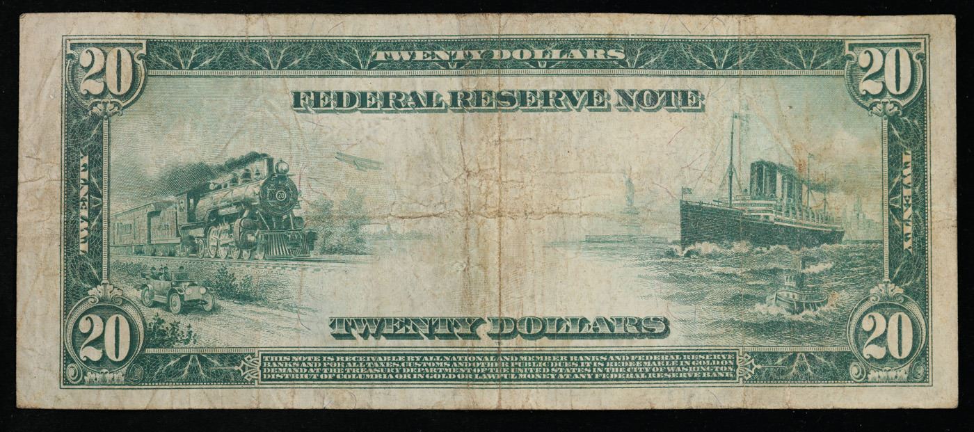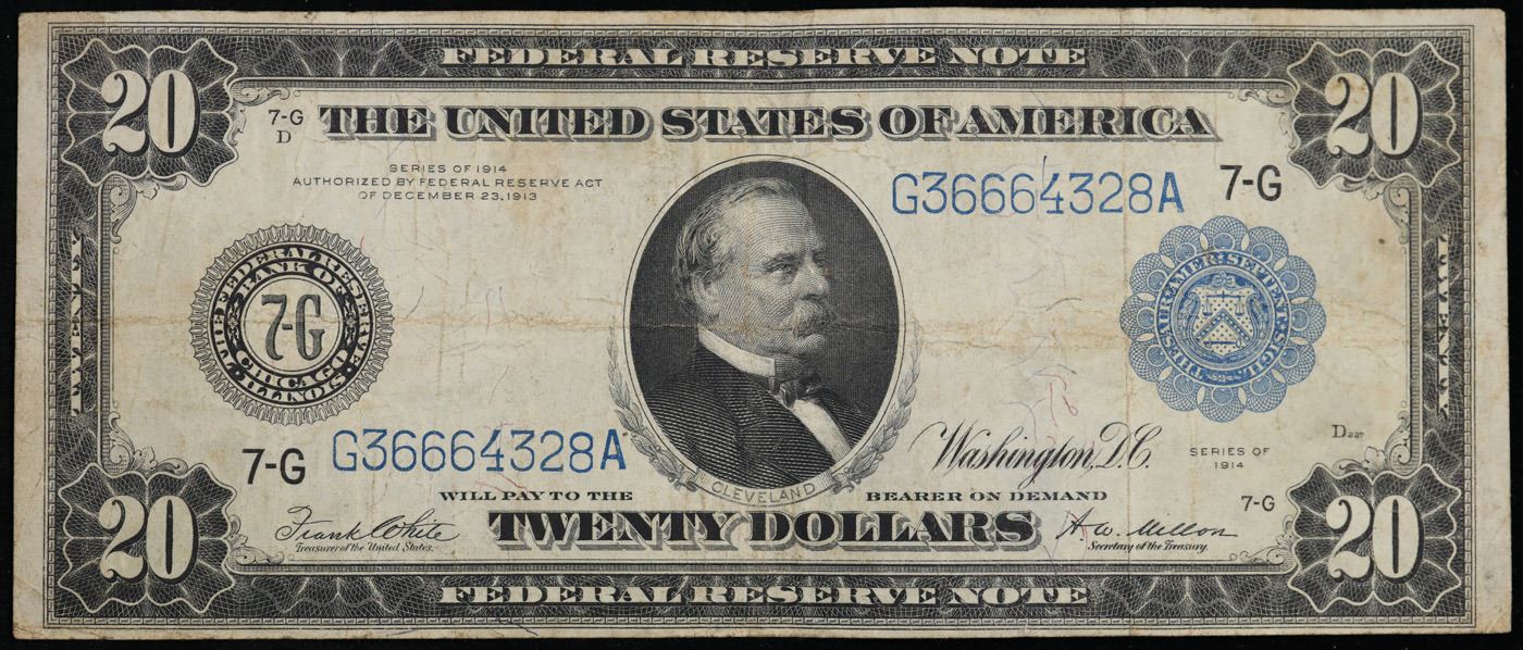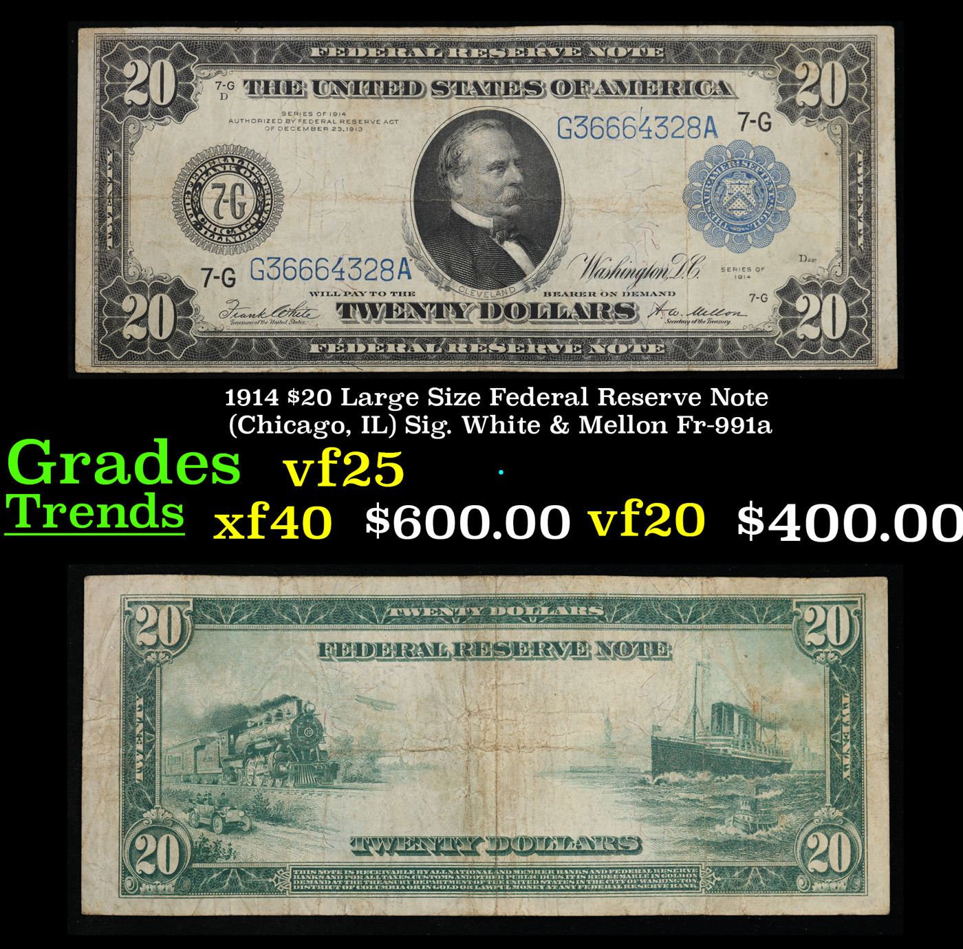 1914 $20 Large Size Federal Reserve Note (Chicago, IL) Sig. White & Mellon Fr-991a Grades vf+