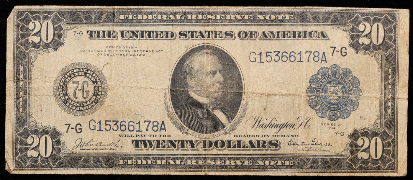 1914 $20 Large Size Federal Reserve Note Grades vf, very fine