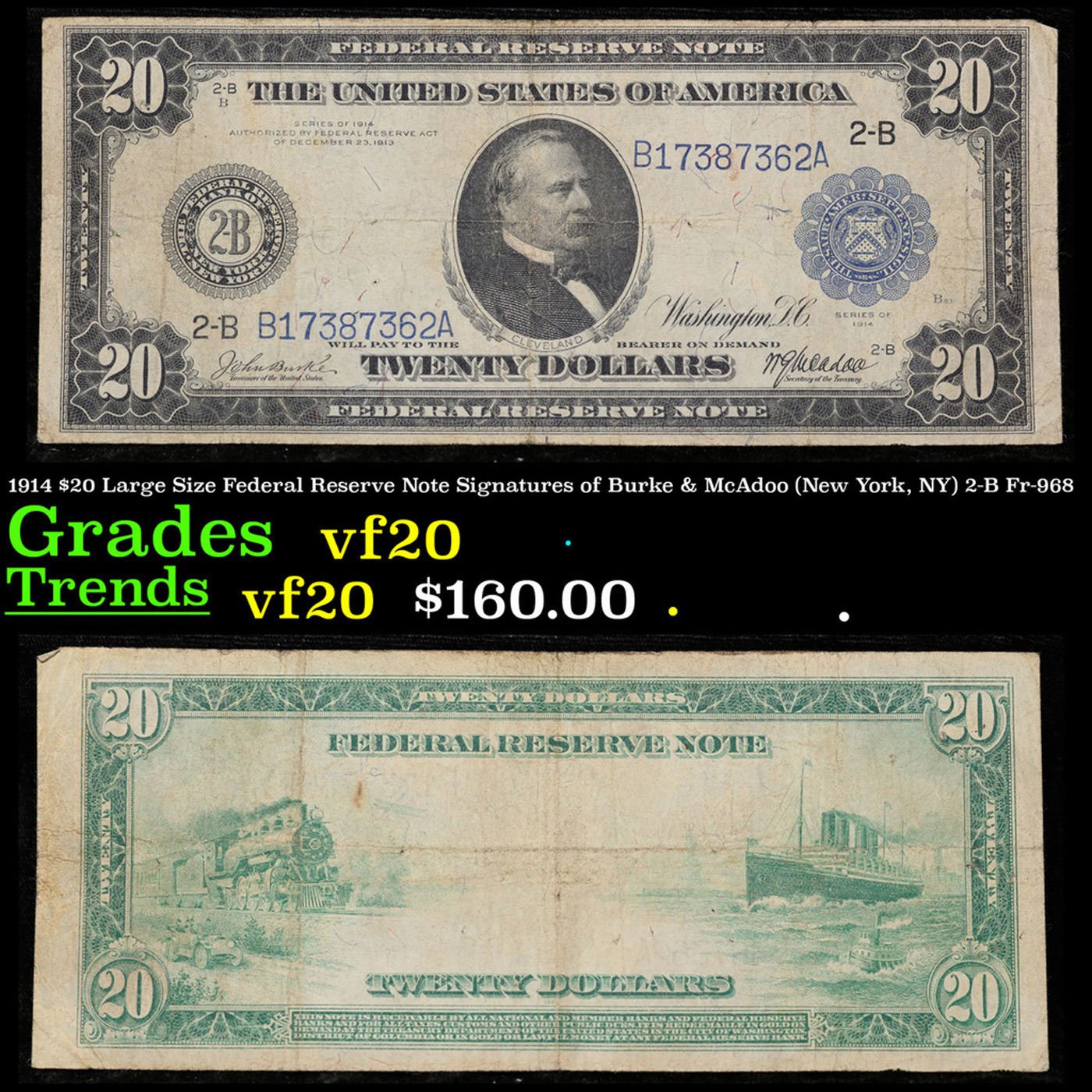 1914 $20 Large Size Federal Reserve Note Signatures of Burke & McAdoo (New York, NY) 2-B Fr-968 Grad