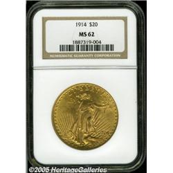 <B>1914 $20 MS62 NGC.</B></I> Nicely struck, with apricot-gold surfaces and soft luster. A few small marks are seen over each side.