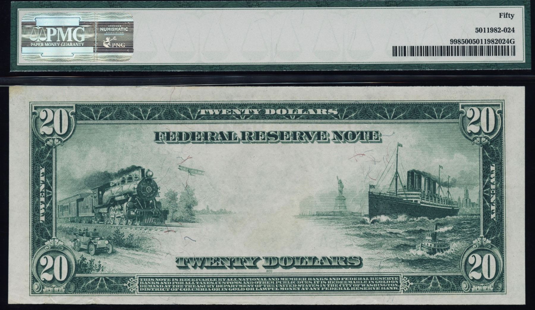 One 1914 $20 Minneapolis Federal Reserve Note PMG 50.