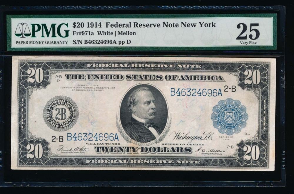 One 1914 $20 New York Federal Reserve Note PMG 25.
