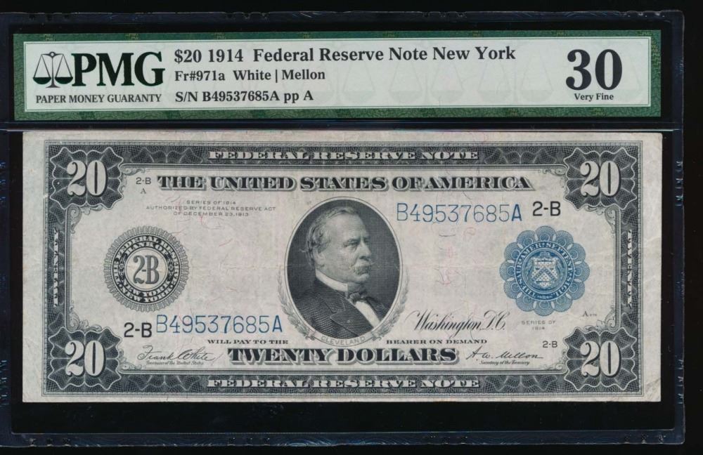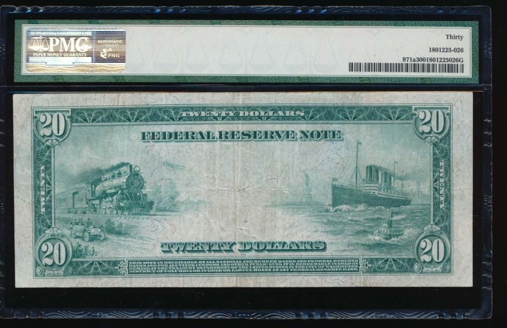 One 1914 $20 New York Federal Reserve Note PMG 30.