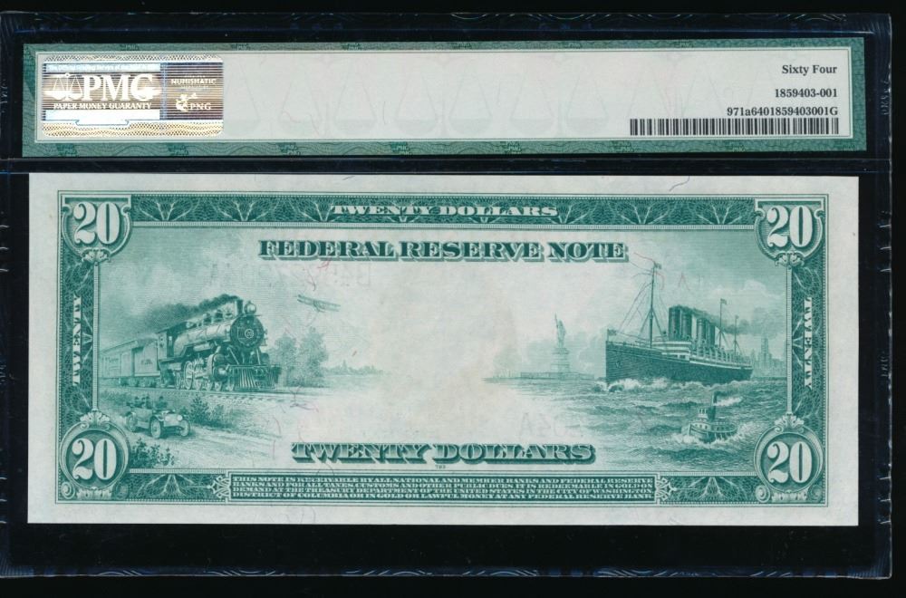 One 1914 $20 New York Federal Reserve Note PMG 64.