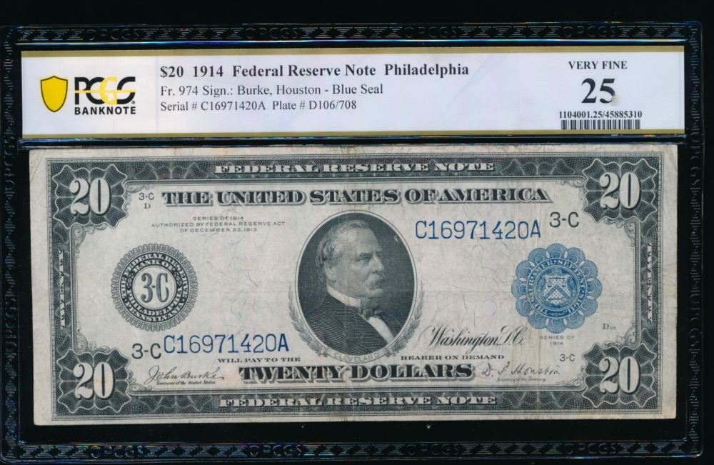 One 1914 $20 Philadelphia FRN PCGS 25.