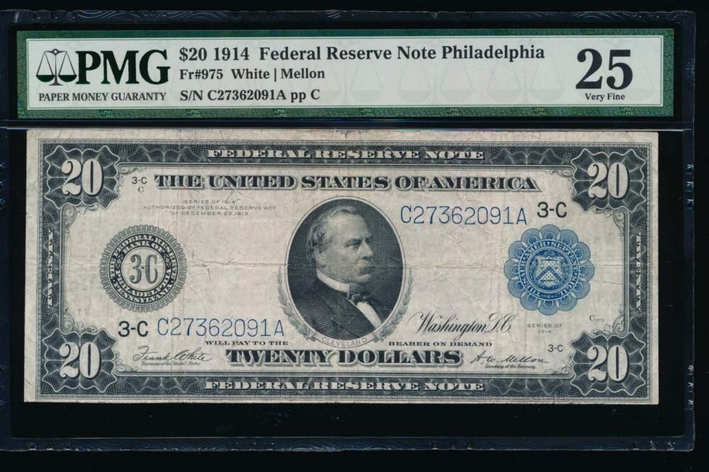 One 1914 $20 Philadelphia Federal Reserve Note PMG 25.