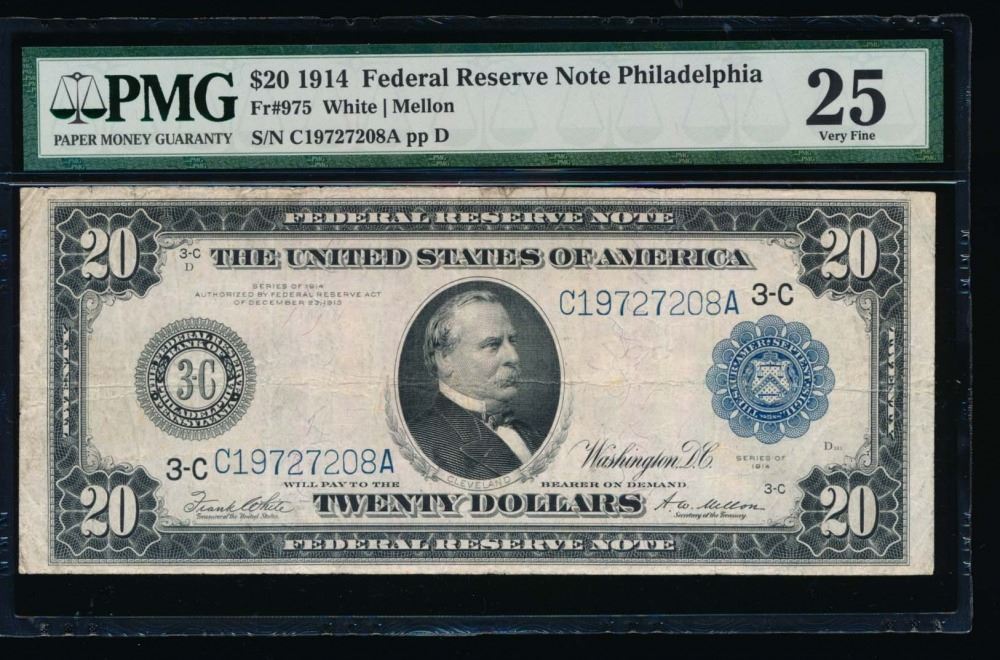 One 1914 $20 Philadelphia Federal Reserve Note PMG 25.