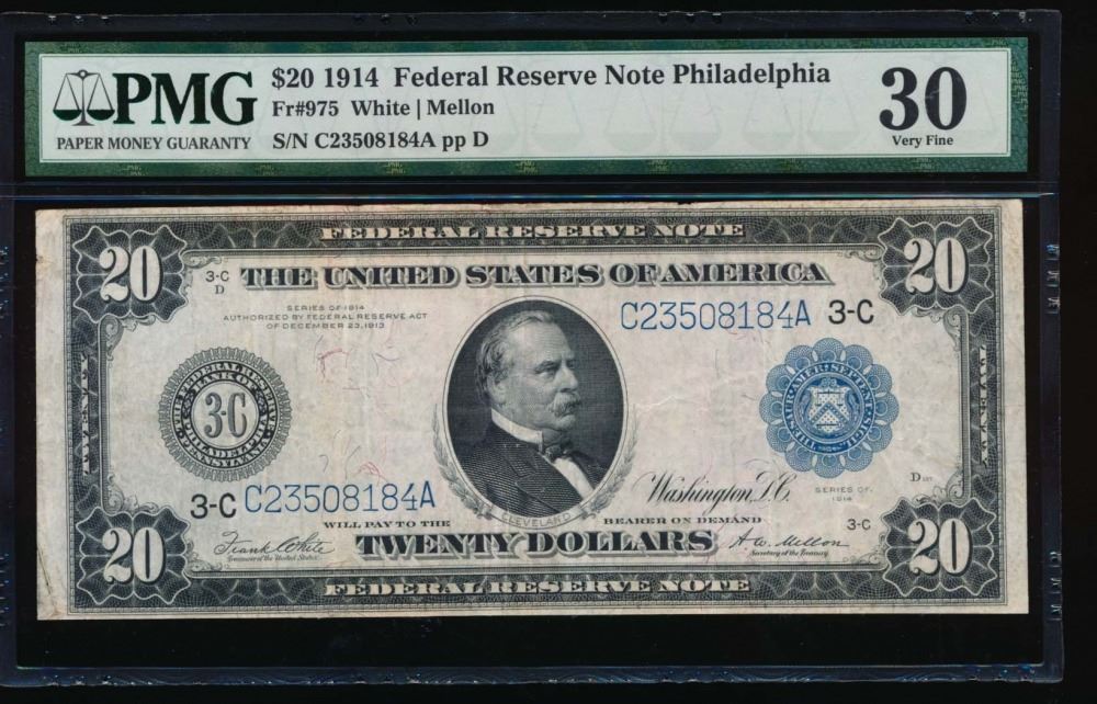 One 1914 $20 Philadelphia Federal Reserve Note PMG 30.