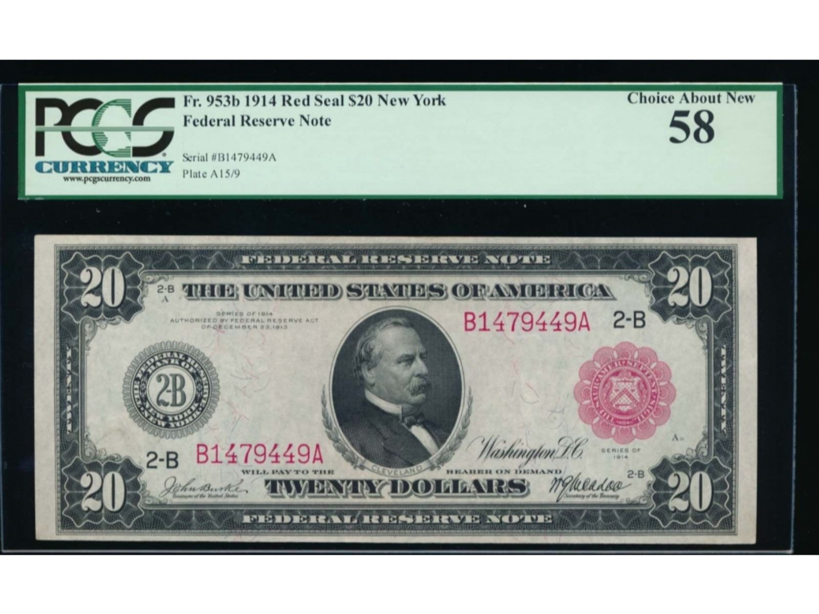 One 1914 $20 Red Seal Federal Reserve Note PCGS 58.