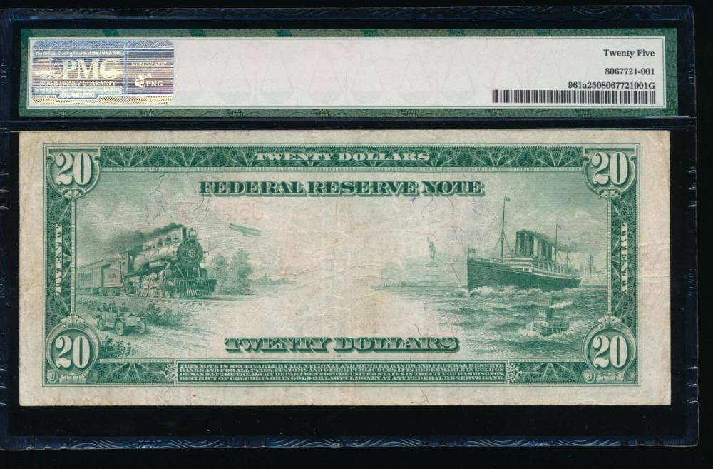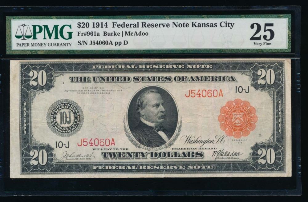 One 1914 $20 Red Seal Kansas City Federal Reserve Note PMG 25.