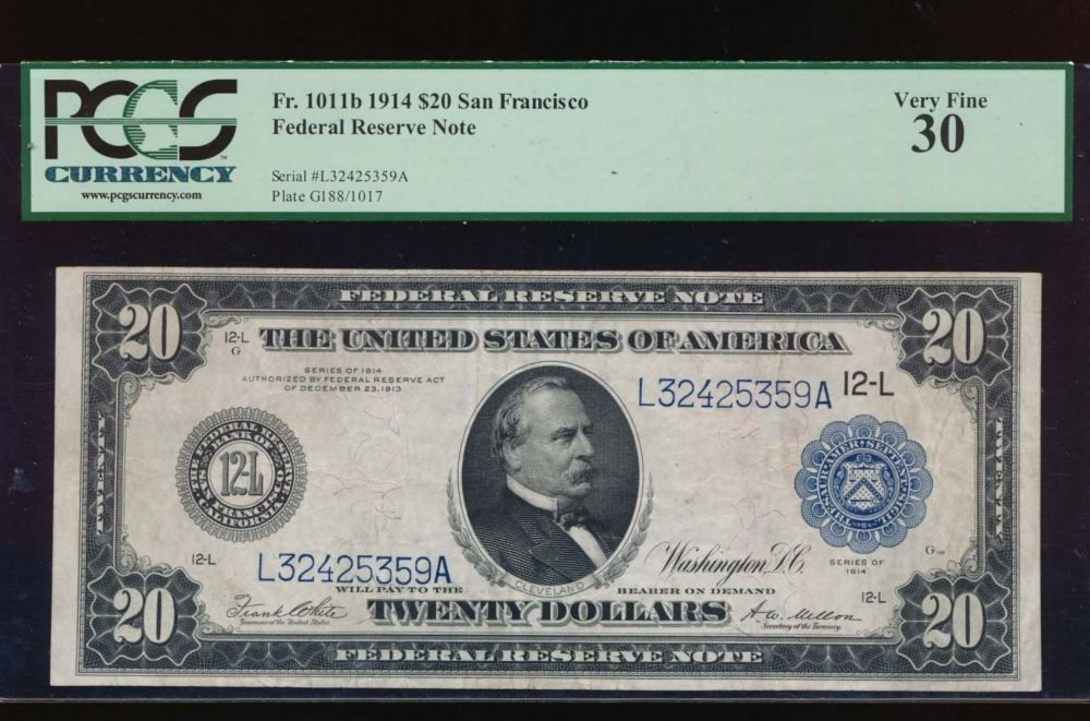 One 1914 $20 San Francisco Federal Reserve Note PCGS 30.