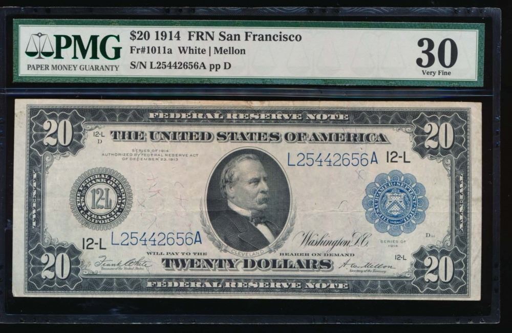 One 1914 $20 San Francisco Federal Reserve Note PMG 30.