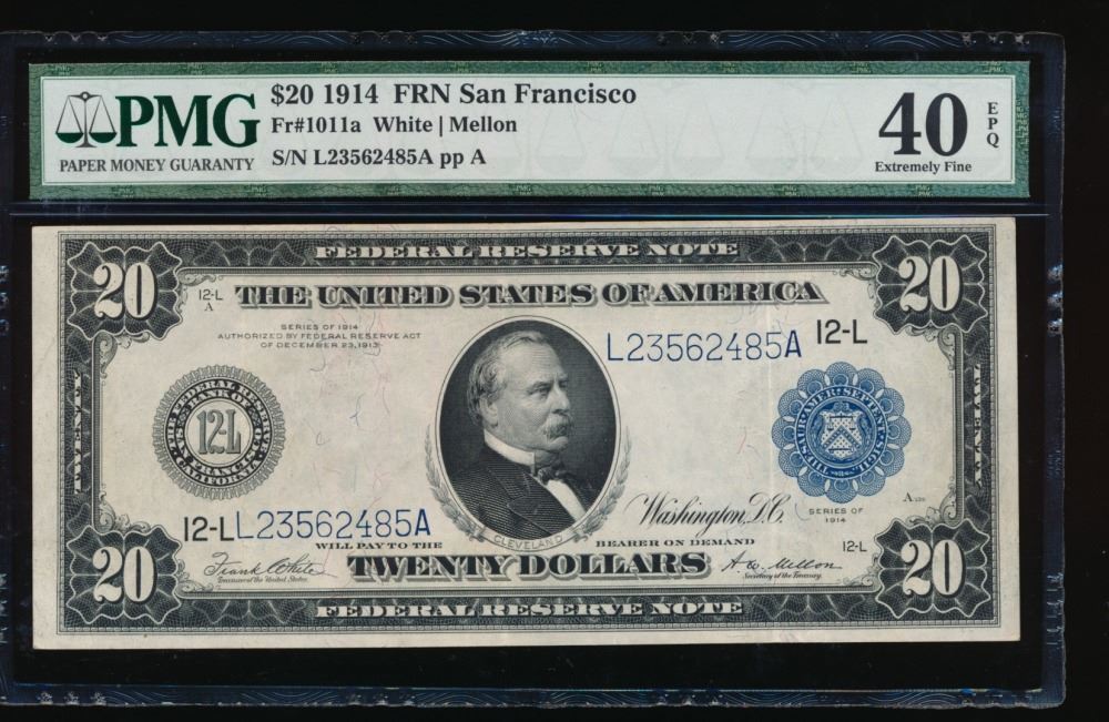 One 1914 $20 San Francisco Federal Reserve Note PMG 40EPQ.