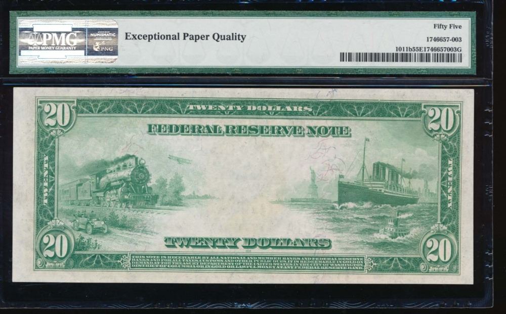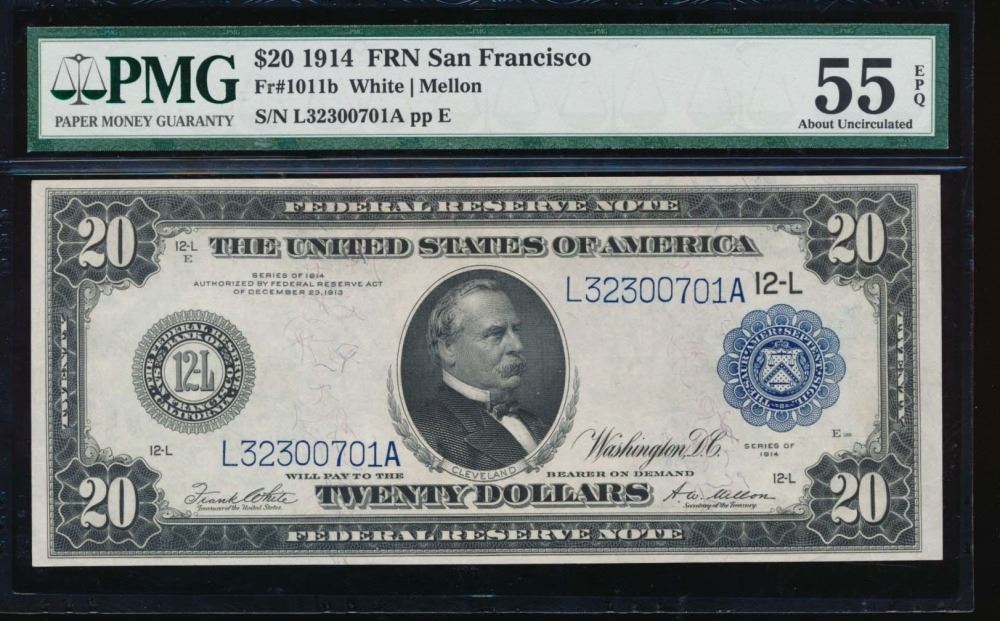 One 1914 $20 San Francisco Federal Reserve Note PMG 55EPQ.