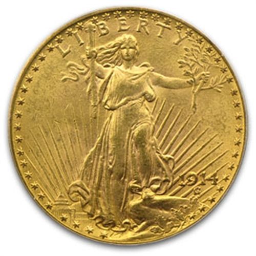 1914 $20 St. Gaudens Gold Double Eagle - MS-63 PCGS **|**|** Year: 1914 ; Mint Mark: MS-63 ; Denomination: $20 ; MSRP: $5200